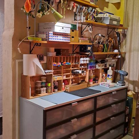 Coin stockage atelier créatif à côté de l'entrée